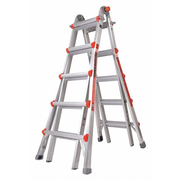 Multipurpose Ladder, 22 ft., IAA, AluminumSKU G2888952Categories Material HandlingDescription Multipurpose Ladder, Extended Ladder Height 19 ft, ANSI Type IAA, Material Aluminum, Load Capacity 375 lb, Stepladder Height 5 to 9 ft, Scaffold Height 1 to 3 ft, Closed Depth 8 in, Closed Height 5 ft 7 in, Bottom Width 27 in, Rail Type Aluminum, Series Super Duty, Standards OSHA and ANSI 14.2, Includes Instruction Manual, Ladder Configurations 90 Degrees , Extension, Scaffold, Staircase, Stepladder, Net Weight 47 lb, Rung/Step Spacing 12 ingraingerSKU: 1YMG2, mscSKU: , zoro_no: G2888952, mongo_id: 65bbe8ef22d7a989a9925071