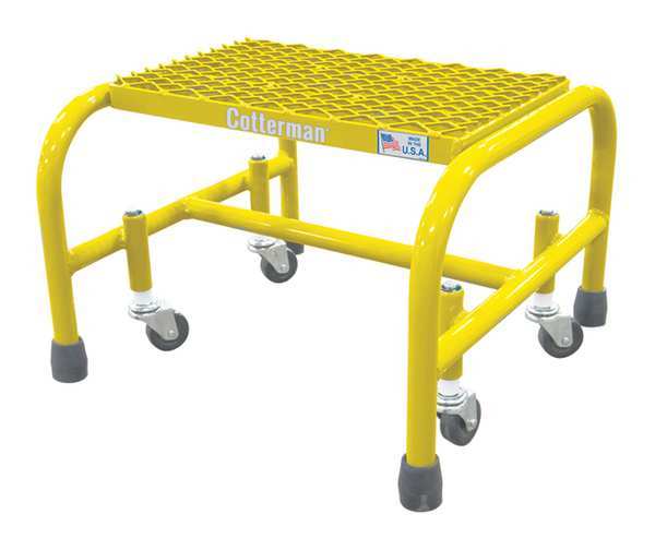 Rolling Ladder, Steel, 12"H., Yellow, Load Capacity: 450 lb.SKU G0895883Categories Material HandlingDescription Step Stool Product Group Rolling Platform, Number of Steps 1, Overall Height 12 in, Material Steel, Load Capacity 450 lb, Top Step Height 12 in, Top Step Depth 7 in, Bottom Width 19 in, Base Depth 19 in, Color Yellow, Finish Powder Coated, Standards OSHA 1910.29 and ANSI A14.7, Ladder Actuation Spring-Loaded Casters, Step Tread Expanded Metal, Step Width 16 ingraingerSKU: , mscSKU: , zoro_no: G0895883, mongo_id: 65bbe8ef22d7a989a9925034