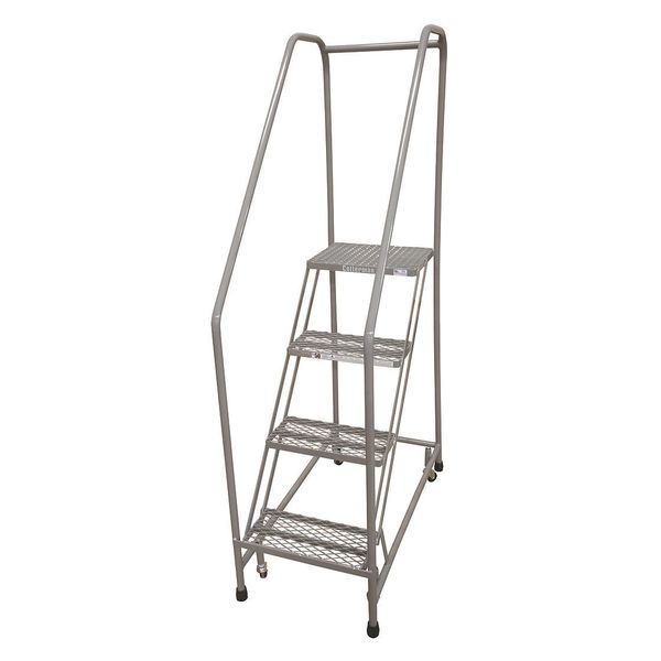 70 in H Steel Rolling Ladder, 4 StepsSKU G2155916Categories Material HandlingDescription Rolling Ladder, Material Steel, Platform Height 40 in, Handrails Included Yes, Handrail Height 30 in, Overall Height 70 in, Number of Steps 4, Assembled, Load Capacity 450 lb, Step Tread Antislip Vinyl, Platform Depth 24 in, Platform Width 24 in, Bottom Width 30 in, Base Depth 40 in, Overall Width 30 in, Climbing Angle 50 Degrees , Step Depth 7 in, Step Width 24 in, Ladder Actuation Weight Activated Step Lock, Finish Powder Coated, Color Gray, Standards ANSI, OSHA, Includes Ladder InstructionsgraingerSKU: 45CJ50, mscSKU: , zoro_no: G2155916, mongo_id: 65bbe8ef22d7a989a992504b