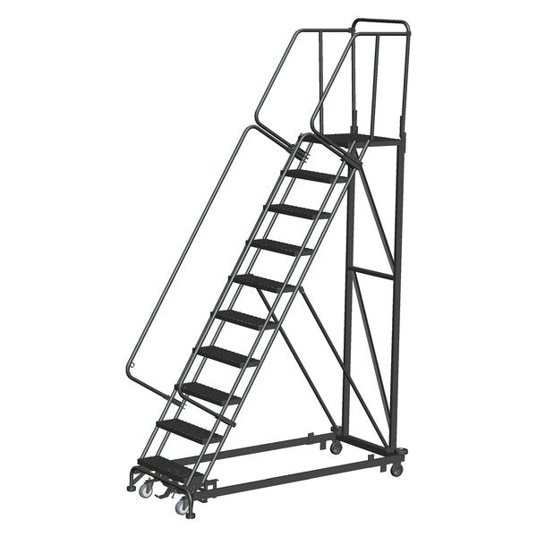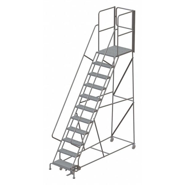 143 in H Steel Rolling Ladder, 11 StepsSKU G9850671Categories Material HandlingDescription Rolling Ladder, Material Steel, Platform Height 110 in, Handrails Included Yes, Handrail Height 30 in, Overall Height 143 in, Number of Steps 11, Assembled, Load Capacity 450 lb, Step Tread Perforated, Platform Depth 14 in, Platform Width 24 in, Bottom Width 32 in, Base Depth 80 in, Overall Width 32 in, Climbing Angle 59 Degrees , Step Depth 7 in, Step Width 24 in, Ladder Actuation Foot Activated Step Lock, Finish Powder Coated, Color Gray, Standards ANSI, OSHAgraingerSKU: 8CU47, mscSKU: , zoro_no: G9850671, mongo_id: 65bbe8ef22d7a989a992502b