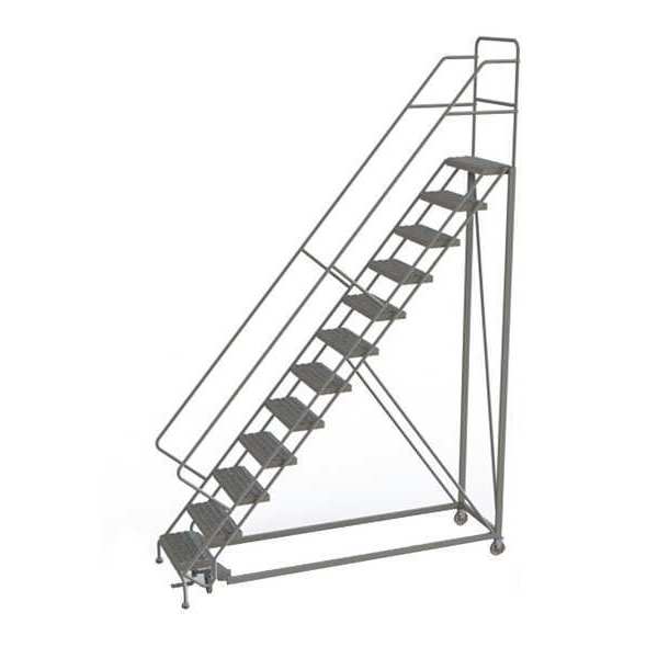 156 in H Steel Rolling Ladder, 12 StepsSKU G2232959Categories Material HandlingDescription Rolling Ladder, Material Steel, Platform Height 120 in, Handrails Included Yes, Handrail Height 36 in, Overall Height 156 in, Number of Steps 12, Unassembled, Load Capacity 450 lb, Step Tread Perforated, Platform Depth 17 in, Platform Width 24 in, Bottom Width 35 in, Base Depth 116 in, Overall Width 35 in, Climbing Angle 50 Degrees , Step Depth 8 1/2 in, Step Width 24 in, Ladder Actuation Foot Activated Step Lock, Finish Powder Coated, Color Gray, Standards ANSI, OSHAgraingerSKU: 25NV56, mscSKU: , zoro_no: G2232959, mongo_id: 65bbe8ef22d7a989a9924ff4