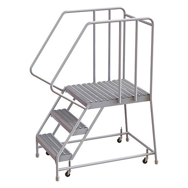 SKU G3488935Categories Material HandlingDescription Rolling Ladder, Material Steel, Platform Height 130 in, Handrails Included Yes, Handrail Height 42 in, Overall Height 172 in, Number of Steps 13, Unassembled, Load Capacity 450 lb, Step Tread Expanded Metal, Platform Depth 12 in, Platform Width 30 in, Bottom Width 42 in, Base Depth 210 in, Overall Width 44 in, Climbing Angle 50 Degrees , Step Depth 7 in, Step Width 30 in, Ladder Actuation Foot Activated Step Lock, Finish Powder Coated, Color Gray, Standards ANSI, OSHA, Rear Exit NograingerSKU: 21VA32, mscSKU: , zoro_no: G3488935, mongo_id: 65bbe8ef22d7a989a9925038