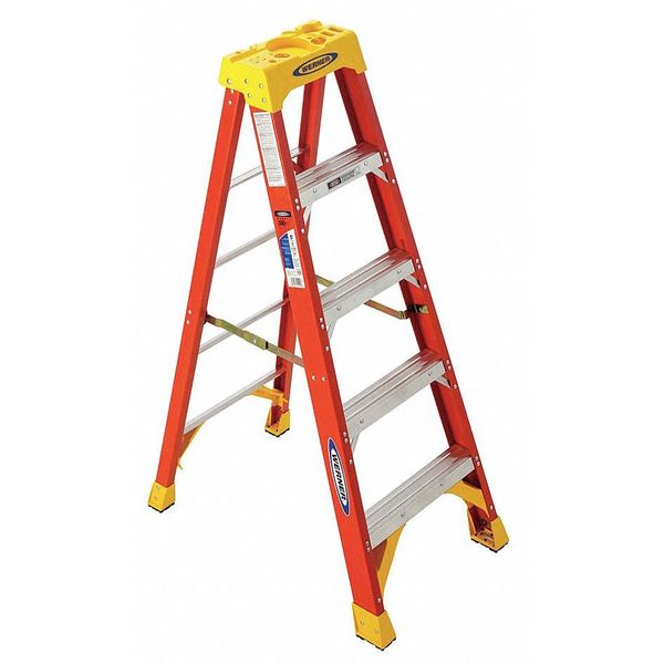 Fiberglass Stepladder, 5 ft Ladder Ht, 4 Steps, 300 lb, 35 1/8 in Base Spread, 21 5/8 in Bottom W