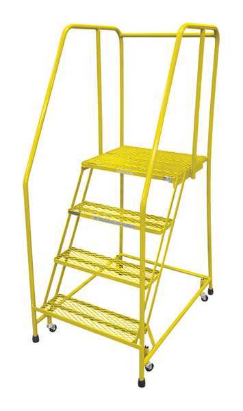 70 in H Steel Rolling Ladder, 4 StepsSKU G0996165Categories Material HandlingDescription Rolling Ladder, Material Steel, Platform Height 40 in, Handrails Included Yes, Handrail Height 30 in, Overall Height 70 in, Number of Steps 4, Assembled, Load Capacity 450 lb, Step Tread Expanded Metal, Platform Depth 20 in, Platform Width 24 in, Bottom Width 30 in, Base Depth 31 in, Overall Width 30 in, Climbing Angle 59 Degrees , Step Depth 7 in, Step Width 24 in, Ladder Actuation Weight Activated Step Lock, Finish Powder Coated, Color Yellow, Standards ANSI, OSHA, Rear Exit NograingerSKU: 21UP93, mscSKU: , zoro_no: G0996165, mongo_id: 65bbe8ef22d7a989a9925037