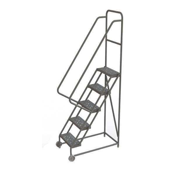 SKU G9930094Categories Material HandlingDescription Tilt and Roll Ladder, Material Steel, Platform Height 50 in, Handrails Included Yes, Handrail Height 30 in, Overall Height 80 in, Number of Steps 5, Assembled, Load Capacity 450 lb, Step Tread Expanded Metal, Platform Depth 20 in, Platform Width 16 in, Bottom Width 20 in, Base Depth 53 in, Overall Width 20 in, Climbing Angle 59 Degrees , Step Depth 7 in, Step Width 16 in, Ladder Actuation None, Finish Powder Coated, Color Gray, Standards ANSI, OSHA, Includes 2-1/2 in Rubber Pads, Rear Exit NograingerSKU: 20Z371, mscSKU: , zoro_no: G9930094, mongo_id: 65bbe8c922d7a989a9916910