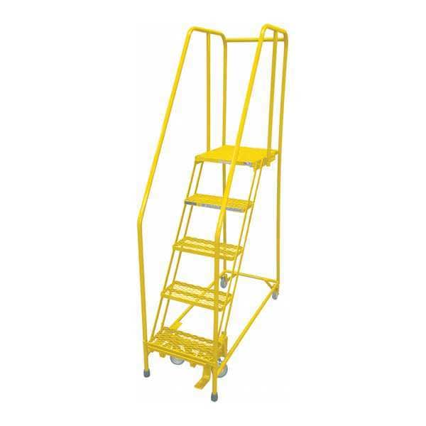 SKU G0996348Categories Material HandlingDescription Rolling Ladder, Material Steel, Platform Height 50 in, Handrails Included Yes, Handrail Height 30 in, Overall Height 80 in, Number of Steps 5, Assembled, Load Capacity 450 lb, Step Tread Perforated, Platform Depth 30 in, Platform Width 24 in, Bottom Width 30 in, Base Depth 60 in, Overall Width 30 in, Climbing Angle 59 Degrees , Step Depth 7 in, Step Width 24 in, Ladder Actuation Foot Activated Step Lock, Finish Powder Coated, Color Yellow, Standards ANSI, OSHA, Rear Exit NograingerSKU: 21UR56, mscSKU: , zoro_no: G0996348, mongo_id: 65bbe8c922d7a989a991692b