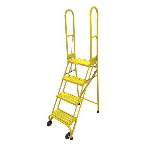 70 in H Steel Rolling Ladder, 4 StepsSKU G1003016Categories Material HandlingDescription Rolling Ladder, Material Steel, Platform Height 40 in, Handrails Included Yes, Handrail Height 30 in, Overall Height 70 in, Number of Steps 4, Assembled, Load Capacity 350 lb, Step Tread Perforated, Platform Depth 10 in, Platform Width 16 in, Bottom Width 21 in, Base Depth 76 in, Overall Width 21 in, Climbing Angle 59 Degrees , Step Depth 7 in, Step Width 16 in, Ladder Actuation None, Finish Powder Coated, Color Yellow, Standards ANSI, OSHA, Rear Exit NograingerSKU: 21VF45, mscSKU: , zoro_no: G1003016, mongo_id: 65bbe8c922d7a989a99168f7