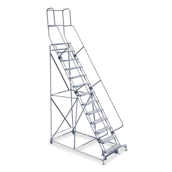 162 in H Steel Rolling Ladder, 12 StepsSKU G3490667Categories Material HandlingDescription Rolling Ladder, Material Steel, Platform Height 120 in, Handrails Included Yes, Handrail Height 42 in, Overall Height 162 in, Number of Steps 12, Unassembled, Load Capacity 450 lb, Step Tread Serrated, Platform Depth 10 in, Platform Width 30 in, Bottom Width 34 in, Base Depth 174 in, Overall Width 32 in, Climbing Angle 59 Degrees , Step Depth 7 in, Step Width 30 in, Ladder Actuation Foot Activated Step Lock, Finish Powder Coated, Color Gray, Standards ANSI, OSHA, Rear Exit NograingerSKU: 21UY51, mscSKU: , zoro_no: G3490667, mongo_id: 65bbe8c922d7a989a9916926