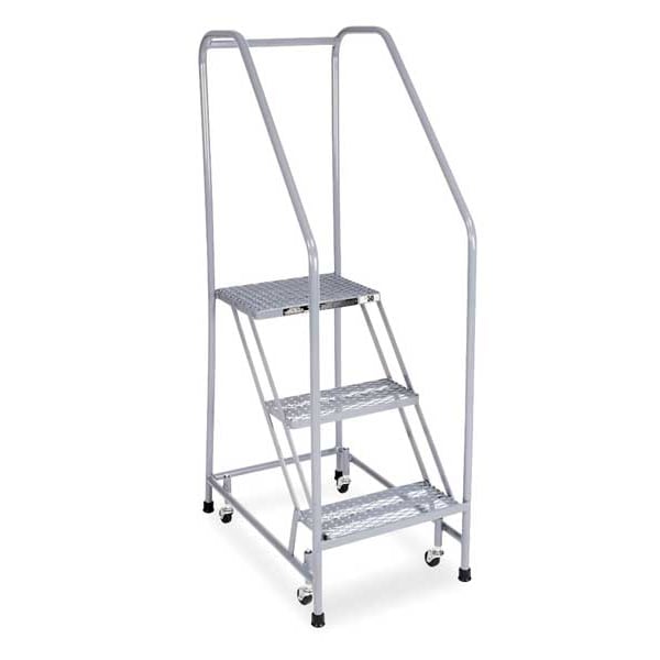 SKU G9929096Categories Material HandlingDescription Rolling Ladder, Material Steel, Platform Height 30 in, Handrails Included Yes, Handrail Height 30 in, Overall Height 60 in, Number of Steps 3, Assembled, Load Capacity 450 lb, Step Tread Expanded Metal, Platform Depth 24 in, Platform Width 16 in, Bottom Width 20 in, Base Depth 44 in, Overall Width 20 in, Climbing Angle 50 Degrees , Step Depth 7 in, Step Width 16 in, Ladder Actuation Weight Activated Step Lock, Finish Powder Coated, Color Gray, Standards ANSI, OSHA, Includes 1 in Crutch TipsgraingerSKU: 20Z472, mscSKU: , zoro_no: G9929096, mongo_id: 65bbe8c922d7a989a9916915