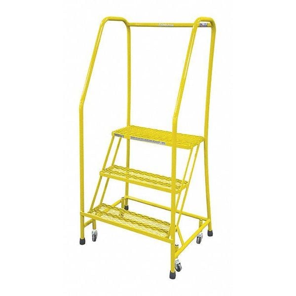 60 in H Steel Rolling Ladder, 3 StepsSKU G0995331Categories Material HandlingDescription Rolling Ladder, Material Steel, Platform Height 30 in, Handrails Included Yes, Handrail Height 30 in, Overall Height 60 in, Number of Steps 3, Assembled, Load Capacity 450 lb, Step Tread Antislip Vinyl, Platform Depth 10 in, Platform Width 16 in, Bottom Width 20 in, Base Depth 26 in, Overall Width 20 in, Climbing Angle 59 Degrees , Step Depth 7 in, Step Width 16 in, Ladder Actuation Weight Activated Step Lock, Finish Powder Coated, Color Yellow, Standards ANSI, OSHA, Rear Exit NograingerSKU: 21UP68, mscSKU: , zoro_no: G0995331, mongo_id: 65bbe8c922d7a989a991691c