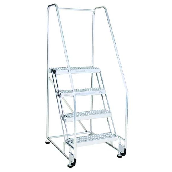 SKU G9826092Categories Material HandlingDescription Tilt and Roll Ladder, Material Aluminum, Platform Height 30 in, Handrails Included Yes, Handrail Height 30 in, Overall Height 60 in, Number of Steps 3, Assembled, Load Capacity 350 lb, Step Tread Serrated, Platform Depth 20 in, Platform Width 24 in, Bottom Width 28 in, Base Depth 40 in, Overall Width 28 in, Climbing Angle 59 Degrees , Step Depth 7 in, Step Width 24 in, Ladder Actuation None, Finish Aluminum Acid Brightened, Color Natural, Standards ANSI, OSHA, Includes 2-1/2 in Rubber PadsgraingerSKU: 20Z520, mscSKU: , zoro_no: G9826092, mongo_id: 65bbe8c922d7a989a9916908