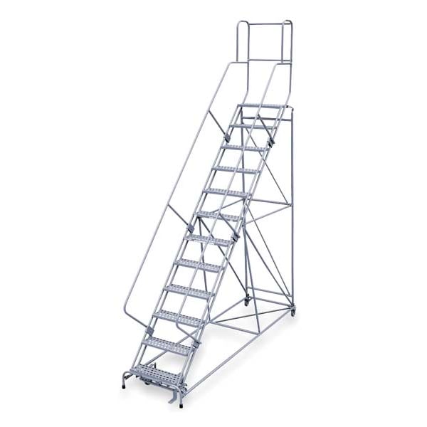 162 in H Steel Rolling Ladder, 12 StepsSKU G2169277Categories Material HandlingDescription Rolling Ladder, Material Steel, Platform Height 120 in, Handrails Included Yes, Handrail Height 42 in, Overall Height 162 in, Number of Steps 12, Unassembled, Load Capacity 800 lb, Step Tread Perforated, Platform Depth 12 in, Platform Width 24 in, Bottom Width 32 in, Base Depth 116 in, Overall Width 32 in, Climbing Angle 50 Degrees , Step Depth 7 in, Step Width 24 in, Ladder Actuation Foot Activated Step Lock, Finish Powder Coated, Color Gray, Standards ANSI, OSHA, Rear Exit NograingerSKU: 3UU86, mscSKU: , zoro_no: G2169277, mongo_id: 65bbe8c922d7a989a991690a