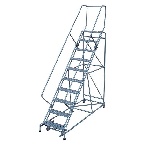 130 in H Steel Rolling Ladder, 10 StepsSKU G2156677Categories Material HandlingDescription Rolling Ladder, Material Steel, Platform Height 100 in, Handrails Included Yes, Handrail Height 30 in, Overall Height 130 in, Number of Steps 10, Unassembled, Load Capacity 450 lb, Step Tread Serrated, Platform Depth 24 in, Platform Width 24 in, Bottom Width 32 in, Base Depth 109 in, Overall Width 32 in, Climbing Angle 50 Degrees , Step Depth 7 in, Step Width 24 in, Ladder Actuation Foot Activated Step Lock, Finish Powder Coated, Color Gray, Standards ANSI, OSHAgraingerSKU: 45CH44, mscSKU: , zoro_no: G2156677, mongo_id: 65bbe8c922d7a989a991691a