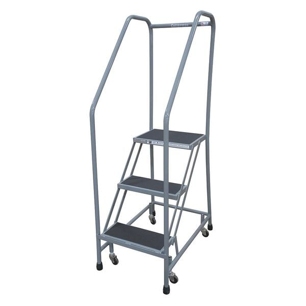 60 in H Steel Rolling Ladder, 3 StepsSKU G2156570Categories Material HandlingDescription Rolling Ladder, Material Steel, Platform Height 30 in, Handrails Included Yes, Handrail Height 30 in, Overall Height 60 in, Number of Steps 3, Assembled, Load Capacity 450 lb, Step Tread Antislip Vinyl, Platform Depth 24 in, Platform Width 16 in, Bottom Width 20 in, Base Depth 32 in, Overall Width 20 in, Climbing Angle 50 Degrees , Step Depth 7 in, Step Width 16 in, Ladder Actuation Weight Activated Step Lock, Finish Powder Coated, Color Gray, Standards ANSI, OSHAgraingerSKU: 45CH57, mscSKU: , zoro_no: G2156570, mongo_id: 65bbe8c922d7a989a9916914