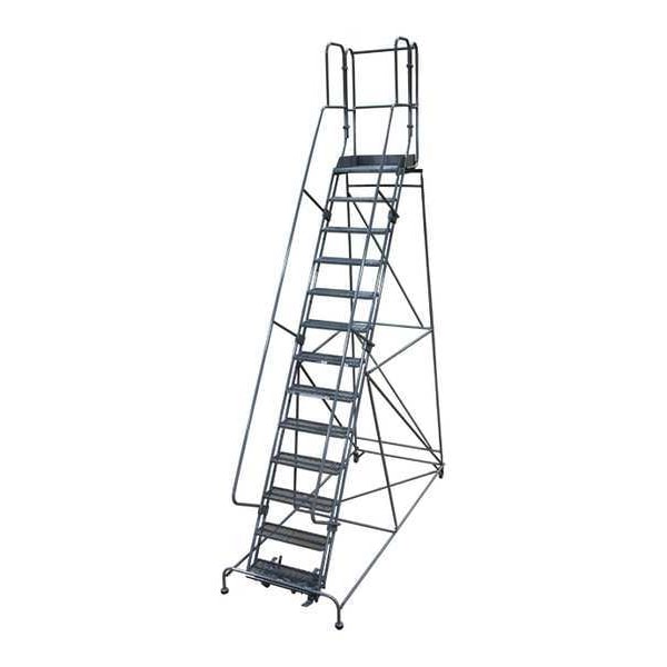172 in H Steel Rolling Ladder, 13 StepsSKU G3490350Categories Material HandlingDescription Rolling Ladder, Material Steel, Platform Height 130 in, Handrails Included Yes, Handrail Height 42 in, Overall Height 172 in, Number of Steps 13, Unassembled, Load Capacity 450 lb, Step Tread Perforated, Platform Depth 30 in, Platform Width 24 in, Bottom Width 42 in, Base Depth 204 in, Overall Width 44 in, Climbing Angle 59 Degrees , Step Depth 7 in, Step Width 24 in, Ladder Actuation Foot Activated Step Lock, Finish Powder Coated, Color Gray, Standards ANSI, OSHA, Rear Exit NograingerSKU: 21UY82, mscSKU: , zoro_no: G3490350, mongo_id: 65bbe8c922d7a989a99168fb