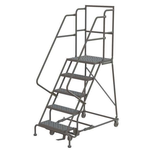 86 in H Steel Rolling Ladder, 5 StepsSKU G0979119Categories Material HandlingDescription Rolling Ladder, Material Steel, Platform Height 50 in, Handrails Included Yes, Handrail Height 36 in, Overall Height 86 in, Number of Steps 5, Unassembled, Load Capacity 450 lb, Step Tread Perforated, Platform Depth 30 in, Platform Width 24 in, Bottom Width 30 in, Base Depth 62 in, Overall Width 30 in, Climbing Angle 56 Degrees , Step Depth 7 in, Step Width 24 in, Ladder Actuation Foot Activated Step Lock, Finish Powder Coated, Color Gray, Standards ANSI, OSHA, Includes 2-1/2 in Rubber PadsgraingerSKU: 25NW59, mscSKU: , zoro_no: G0979119, mongo_id: 65bbe8c922d7a989a99168bf