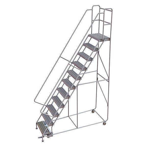 142 in H Aluminum Rolling Ladder, 11 StepsSKU G0980729Categories Material HandlingDescription Rolling Ladder, Material Aluminum, Platform Height 110 in, Handrails Included Yes, Handrail Height 32 in, Overall Height 142 in, Number of Steps 11, Assembled, Load Capacity 350 lb, Step Tread Serrated, Platform Depth 14 in, Platform Width 24 in, Bottom Width 38 in, Base Depth 86 in, Overall Width 38 in, Climbing Angle 56 Degrees , Step Depth 7 in, Step Width 24 in, Ladder Actuation Foot Activated Step Lock, Finish Aluminum Mill, Color Aluminum, Standards ANSI, OSHAgraingerSKU: 25NY69, mscSKU: , zoro_no: G0980729, mongo_id: 65bbe8c922d7a989a99168bc