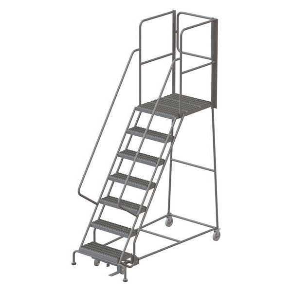 112 in H Steel Rolling Ladder, 7 StepsSKU G3374099Categories Material HandlingDescription Rolling Ladder, Material Steel, Platform Height 70 in, Handrails Included Yes, Handrail Height 42 in, Overall Height 112 in, Number of Steps 7, Unassembled, Load Capacity 450 lb, Step Tread Serrated, Platform Depth 30 in, Platform Width 24 in, Bottom Width 35 in, Base Depth 77 in, Overall Width 35 in, Climbing Angle 56 Degrees , Step Depth 7 in, Step Width 24 in, Ladder Actuation Foot Activated Step Lock, Finish Powder Coated, Color Gray, Standards ANSI, OSHA, Includes Rear-Exit GategraingerSKU: 45FF66, mscSKU: , zoro_no: G3374099, mongo_id: 65bbe8c922d7a989a99168bd