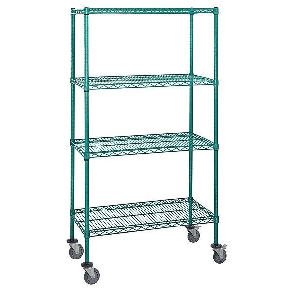 Mobile Stem Caster Cart, Green, 4 ShelvesSKU G4633392Categories Material HandlingDescription Mobile Stem Caster Cart, Steel, Epoxy Coated, Green, Overall Depth 36 in, Overall Height 69 in, Overall Width 24 in, Caster Mounting Type Stem Caster, Caster Wheel/Configuration (2) Swivel, (2) Swivel with Brakes, Caster Wheel/Tread Material Thermoplastic Resin, Caster Wheel Diameter 5 in, Load Capacity per Shelf 800 lb, Whole Unit Load Capacity 1,200 lb, Number of Shelves 4, Shelf Adjustment Type Split Sleeve, Shelving Gauge 18 ga, Post Shape Circle, Recommended Environments Dry, WetgraingerSKU: 60TT04, mscSKU: , zoro_no: G4633392, mongo_id: 65bbe8c922d7a989a99151e1