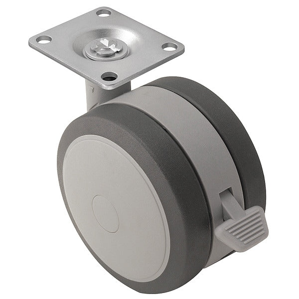 2" X 13/16" Non-Marking Polyolefin Swivel Caster, Side Brake, Loads Up To 90 lb