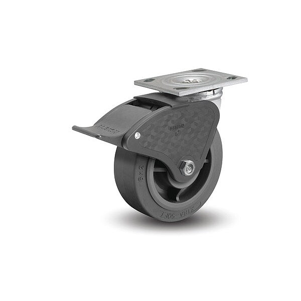 100mm Non-Marking Thermoplastic Elastomer Swivel Caster, Side Brake, Loads Up To 225 lb