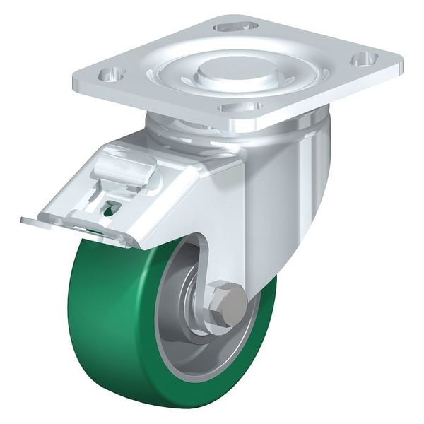 Swivel Plate Caster, PU, 4", Brake, Load Rating: 600 lb.