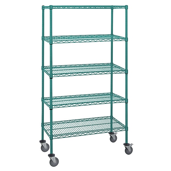 Mobile Stem Caster Cart, Green, 5 ShelvesSKU G4636308Categories Material HandlingDescription Mobile Stem Caster Cart, Steel, Epoxy Coated, Green, Overall Depth 48 in, Overall Height 80 in, Overall Width 18 in, Caster Mounting Type Stem Caster, Caster Wheel/Configuration (2) Swivel, (2) Swivel with Brakes, Caster Wheel/Tread Material Thermoplastic Resin, Caster Wheel Diameter 5 in, Load Capacity per Shelf 800 lb, Whole Unit Load Capacity 1,200 lb, Number of Shelves 5, Shelf Adjustment Type Split Sleeve, Shelving Gauge 18 ga, Post Shape Circle, Recommended Environments Dry, WetgraingerSKU: 60TT20, mscSKU: , zoro_no: G4636308, mongo_id: 65bbe93422d7a989a99402e8
