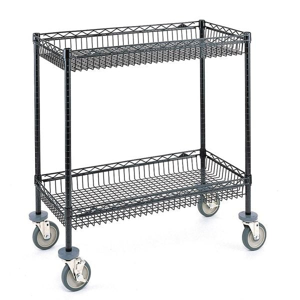 Steel Utility Cart with Deep Lipped Wire Shelves, (2) Raised, 2 Shelves, 800 lb