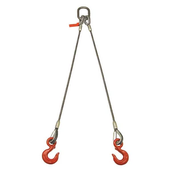 SKU G3326535Categories Material HandlingDescription Wire Rope Sling, Sling Type Two Leg Bridle, Sling Length 10 ft, Sling Capacity @ 30 Degrees 2,800 lb, Sling Capacity @ 45 Degrees 4,000 lb, Sling Capacity @ 60 Degrees 5,000 lb, Rope Diameter 3/8 in, Temp. Range -60 Degrees to 400 Degrees F, Standards OSHA 1910.184; ASME B30.9graingerSKU: 8NJG5, mscSKU: , zoro_no: G3326535, mongo_id: 65bbe8c222d7a989a9914fac