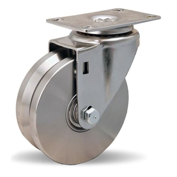 Stainless Steel Swivel Caster, 4" x 1 3/8" Stainless Steel V-Grooved Wheel, 1/2" Plain Bore