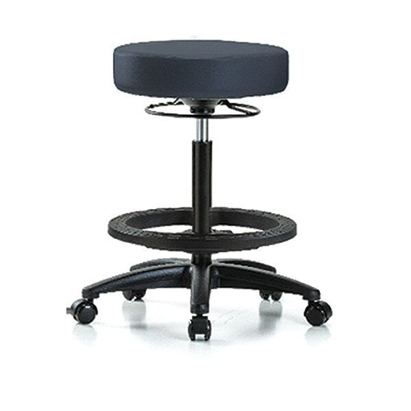 Bench Stool, Med, Fabric, Bk Casters, Nav