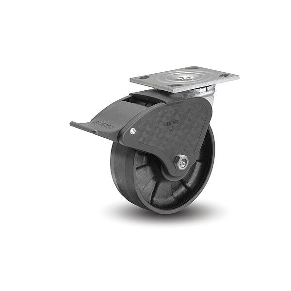 Swivel Plate Caster, Gray Nylon, 4", Brake, Load Rating: 615 lb.