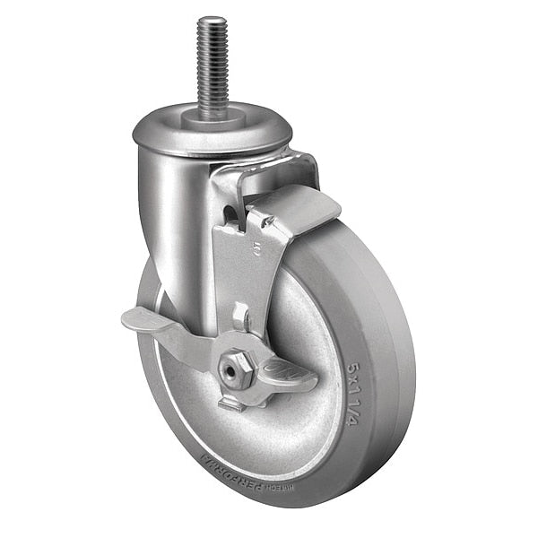 4" X 1-1/4" Non-Marking Rubber Performa (Flat) Swivel Caster, Side Brake, Loads Up To 300 lbSKU G7812658Categories Material HandlingDescription General Purpose Threaded Stem Caster, Swivel Caster with Brake, 250 lb Load Rating, 0 to 299 lb, 4 in Wheel Dia., 1 1/4 in Wheel Width, Rubber Wheel/Tread Material, 6 1/2 in Mounting Height, Precision Ball, 1 In.-13 x 1 1/2 in Caster Stem Size, Threaded, Steel Caster Frame Material, Zinc Plated Frame Finish, Yes Non-Marking, 1 Number of WheelsgraingerSKU: 56HE42, mscSKU: , zoro_no: G7812658, mongo_id: 65bbe89622d7a989a99038ae