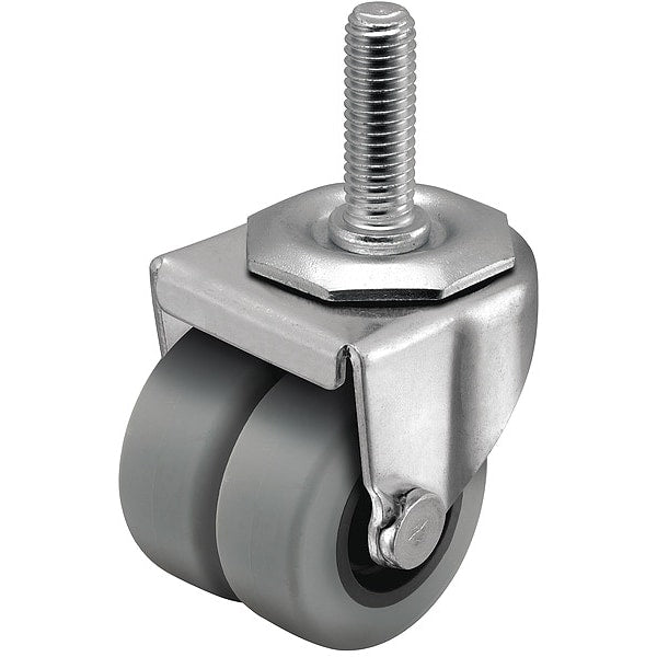 SKU G7806385Categories Material HandlingDescription Low-Profile Easy-Turn Threaded Stem Caster, Swivel Caster, 180 lb Load Rating, 0 to 299 lb, 2 in Wheel Dia., 13/16 in Wheel Width, Thermoplastic Rubber Wheel/Tread Material, 2 3/4 in Mounting Height, Plain, 1/2 In.-13 x 1 1/2 in Caster Stem Size, Threaded, Steel Caster Frame Material, Zinc Plated Frame Finish, Yes Non-Marking, 2 Number of WheelsgraingerSKU: , mscSKU: , zoro_no: G7806385, mongo_id: 65bbe89622d7a989a990394c
