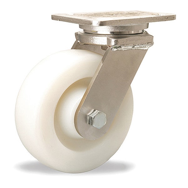 Stainless Steel Workhorse Swivel Caster, 6" x 2" White Nylon Wheel, 1/2" Sealed Precision Ball Bearing