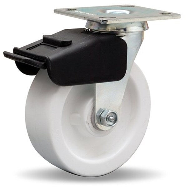 Combination Brake Swivel Caster, 6" x 2" Aqualite Polyolefin Wheel, 1/2" Delrin Bearing