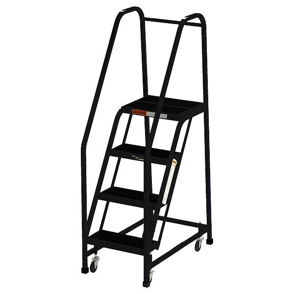 $969.99 / eachWeb price64 in H Steel Rolling Ladder, 4 StepsSKU G2118247Categories Material HandlingDescription Rolling Ladder, Material Steel, Platform Height 40 in, Handrails Included Yes, Handrail Height 24 in, Overall Height 64 in, Number of Steps 4, Assembled, Load Capacity 450 lb, Step Tread Antislip Vinyl, Platform Depth 14 in, Platform Width 17 in, Bottom Width 22 in, Base Depth 36 in, Climbing Angle 60 Degrees , Step Depth 7 in, Step Width 17 in, Ladder Actuation Weight Activated Step Lock, Finish Painted, Color Black, Standards OSHA, Rear Exit NograingerSKU: 8RN76, mscSKU: , zoro_no: G2118247, mongo_id: 65bbe8819a749db822796178