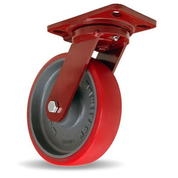 Extra Heavy Duty Dual-Wheel Swivel Caster, 8" x 3" Ergo-Glide Polyurethane (85A) on Cast Iron Wheel