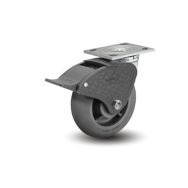 Swivel Plate Caster, w/Brake, SideStrap, 5"