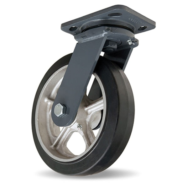 Workhorse Swivel Caster, 8" x 2" Moldon Rubber Wheel (70A), 1/2" Precision Tapered Bearings