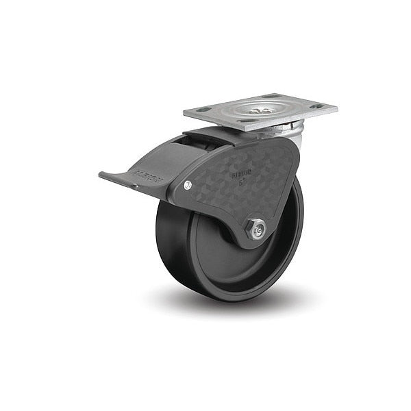 4" X 2" Non-Marking Polypropylene Swivel Caster, Total Lock Brake, Loads Up To 450 lb