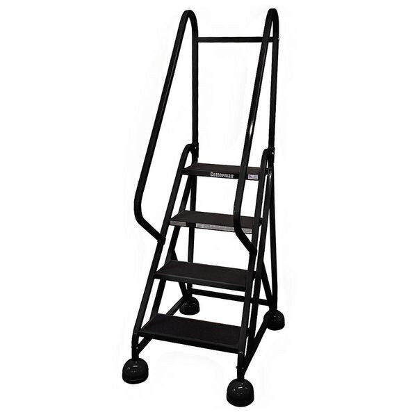 SKU G9808452Categories Material HandlingDescription Rolling Ladder, Material Steel, Platform Height 36 in, Handrails Included Yes, Handrail Height 30 in, Overall Height 66 in, Number of Steps 4, Unassembled, Load Capacity 450 lb, Step Tread Antislip Vinyl, Platform Depth 14 in, Platform Width 16 in, Bottom Width 25 in, Base Depth 39 in, Overall Width 25 in, Climbing Angle 59 Degrees , Step Depth 8 in, Step Width 16 in, Ladder Actuation Weight Activated Step Lock, Finish Powder Coated, Color Black, Standards ANSI, OSHA, Includes Double HandrailsgraingerSKU: 6MXH5, mscSKU: , zoro_no: G9808452, mongo_id: 65bbe87822d7a989a98f9f28