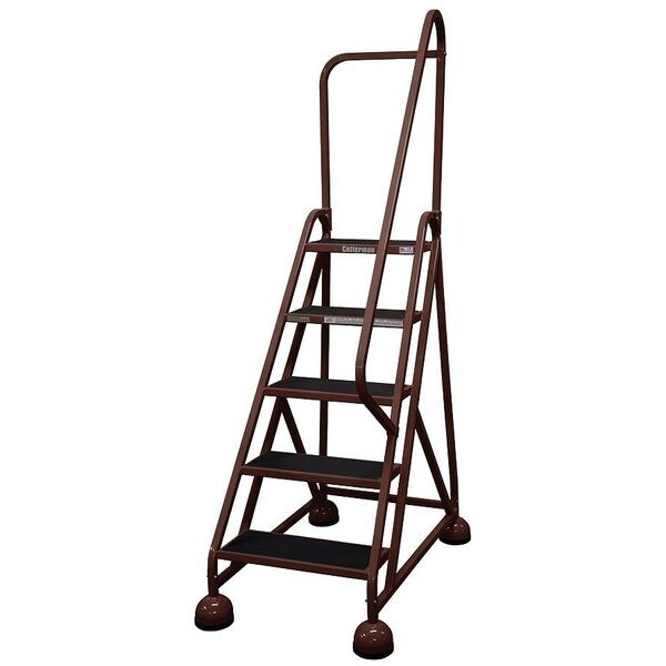 $948.74 / eachWeb price75 in H Steel Rolling Ladder, 5 StepsSKU G2124991Categories Material HandlingDescription Rolling Ladder, Material Steel, Platform Height 45 in, Handrails Included Yes, Handrail Height 30 in, Overall Height 75 in, Number of Steps 5, Unassembled, Load Capacity 450 lb, Step Tread Antislip Vinyl, Platform Depth 14 in, Platform Width 16 in, Bottom Width 26 in, Base Depth 46 in, Overall Width 26 in, Climbing Angle 59 Degrees , Step Depth 8 in, Step Width 16 in, Ladder Actuation Weight Activated Step Lock, Finish Powder Coated, Color Brown, Standards ANSI, OSHA, Includes Right HandrailgraingerSKU: 6MXL3, mscSKU: , zoro_no: G2124991, mongo_id: 65bbe87822d7a989a98f9f42
