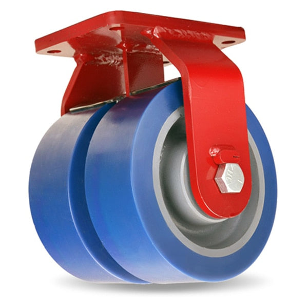 Heavy Service Dual-Wheel Swivel Caster, 4" x 2" Ergo-Tech Polyurethane (87A) on Cast Iron Wheels
