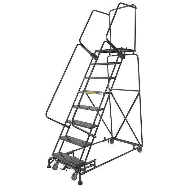 $1,452.49 / eachWeb price113 in H Steel Rolling Ladder, 8 StepsSKU G5207277Categories Material HandlingDescription Rolling Ladder, Material Steel, Platform Height 80 in, Handrails Included Yes, Handrail Height 30 in, Overall Height 113 in, Number of Steps 8, Unassembled, Load Capacity 450 lb, Step Tread Expanded Metal, Platform Depth 21 in, Platform Width 24 in, Bottom Width 32 in, Base Depth 68 in, Overall Width 32 in, Climbing Angle 59 Degrees , Step Depth 7 in, Step Width 24 in, Ladder Actuation Weight Activated Step Lock, Finish Powder Coated, Color Gray, Standards ANSI, OSHAgraingerSKU: 41LF76, mscSKU: , zoro_no: G5207277, mongo_id: 65bbe6903aaddbd5a903b4ed