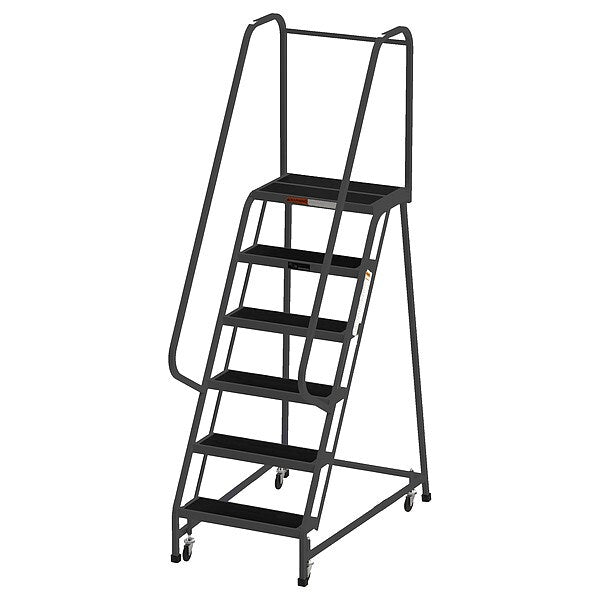 90 in H Steel Rolling Ladder, 6 Steps, 450 lb Load Capacity