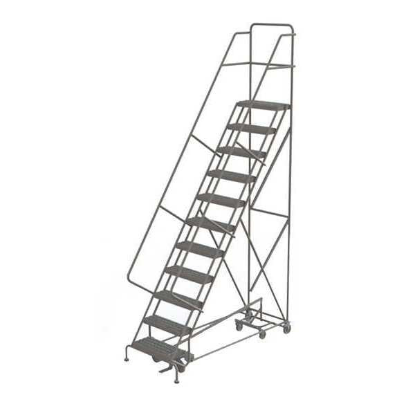 $3,314.99 / eachWeb price142 in H Steel Rolling Ladder, 10 StepsSKU G9815102Categories Material HandlingDescription Rolling Ladder, Material Steel, Platform Height 100 in, Handrails Included Yes, Handrail Height 42 in, Overall Height 142 in, Number of Steps 10, Unassembled, Load Capacity 1,000 lb, Step Tread Serrated, Platform Depth 24 in, Platform Width 24 in, Bottom Width 37 in, Base Depth 86 in, Overall Width 37 in, Climbing Angle 59 Degrees , Step Depth 7 in, Step Width 24 in, Ladder Actuation Foot Activated Step Lock, Finish Powder Coated, Color Gray/Yellow, Standards ANSI, OSHAgraingerSKU: 46C335, mscSKU: , zoro_no: G9815102, mongo_id: 65bbe6903aaddbd5a903b53a