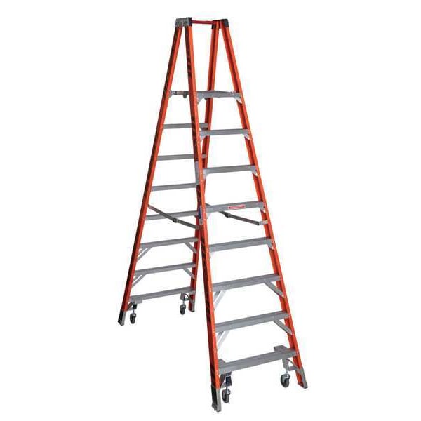$1,146.24 / eachWeb price10 ft Fiberglass Twin Platform StepladderSKU G1219355Categories Material HandlingDescription Twin Platform Stepladder, Ladder Height 10 ft, Platform Width 12 3/4 in, Platform Depth 22 in, Platform Height 8 ft, Load Capacity 300 lb, Bottom Width 32 in, Base Spread 78 1/4 in, Material Fiberglass, Series PT7400-4C, Number of Steps 8, Step Depth 3 in, Step Tread Ribbed, Rung/Step Spacing 12 in, ANSI Type IA, Includes (4) Spring Mounted Casters, EDGE Bracing with External Rail Shields, Pinch-Proof Platform, Safety Guard Rail, Standards ANSI, Net Weight 68 lbgraingerSKU: 4XP40, mscSKU: , zoro_no: G1219355, mongo_id: 65bbe6903aaddbd5a903b4bc