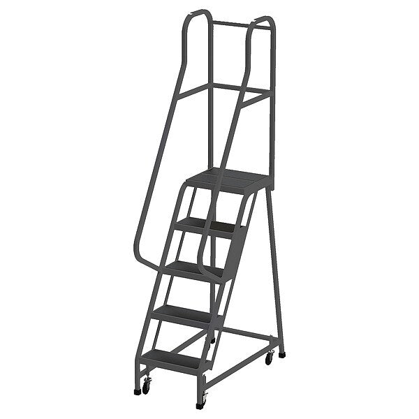 SKU G2122821Categories Material HandlingDescription Rolling Ladder, Material Steel, Platform Height 50 in, Handrails Included Yes, Handrail Height 43 in, Overall Height 93 in, Number of Steps 5, Assembled, Load Capacity 450 lb, Step Tread Antislip Vinyl, Platform Depth 14 in, Platform Width 17 in, Bottom Width 23 in, Base Depth 42 in, Climbing Angle 60 Degrees , Step Depth 7 in, Step Width 17 in, Ladder Actuation Weight Activated Step Lock, Finish Painted, Color Gray, Standards CAL-OSHA, Rear Exit NograingerSKU: 8AHM2, mscSKU: , zoro_no: G2122821, mongo_id: 65bbe6903aaddbd5a903b4a7