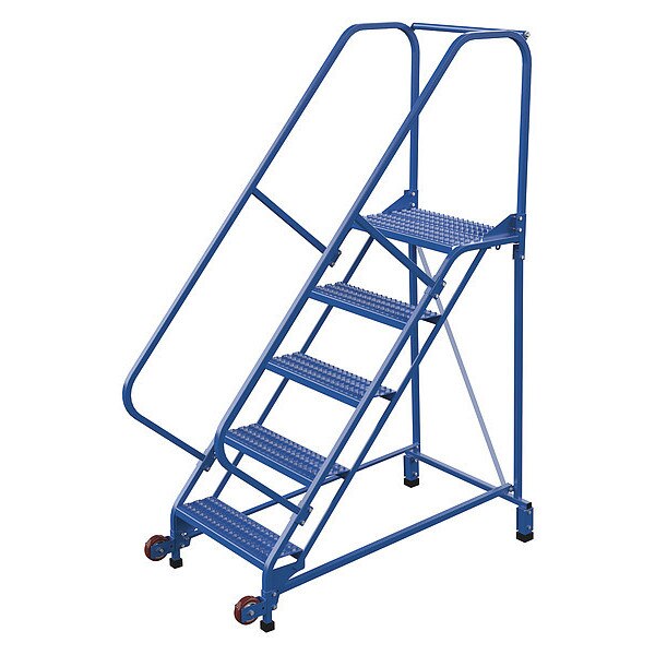 $891.24 / eachWeb price80 in H Steel Rolling Ladder, 5 StepsSKU G0638760Categories Material HandlingDescription Rolling Ladder, Material Steel, Platform Height 50 in, Handrails Included Yes, Handrail Height 30 in, Overall Height 80 in, Number of Steps 5, Assembled, Load Capacity 450 lb, Step Tread Expanded Metal, Platform Depth 10 in, Platform Width 24 in, Bottom Width 30 in, Base Depth 40 in, Overall Width 30 in, Climbing Angle 59 Degrees , Step Depth 7 in, Step Width 24 in, Ladder Actuation Foot Activated Step Lock, Finish Powder Coated, Color Gray, Standards ANSI, OSHA, Rear Exit NograingerSKU: 21UR25, mscSKU: , zoro_no: G0638760, mongo_id: 65bbe8289a749db822779530